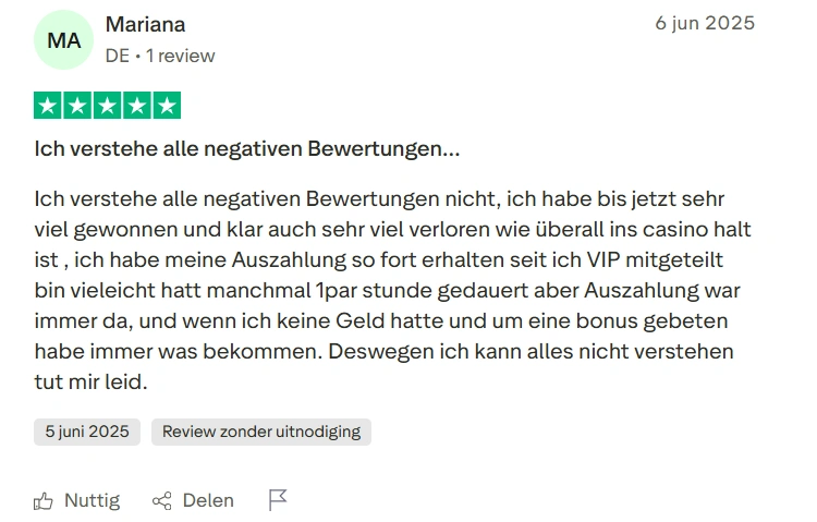 Hieronder vindt u 10 recente beoordelingen van spelers die hun ervaringen op Trustpilot hebben gedeeld: